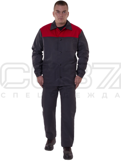 Костюм рабочий "Стандарт" цв.т.серый/красный тк.смесовая (куртка+брюки) в Тюмени