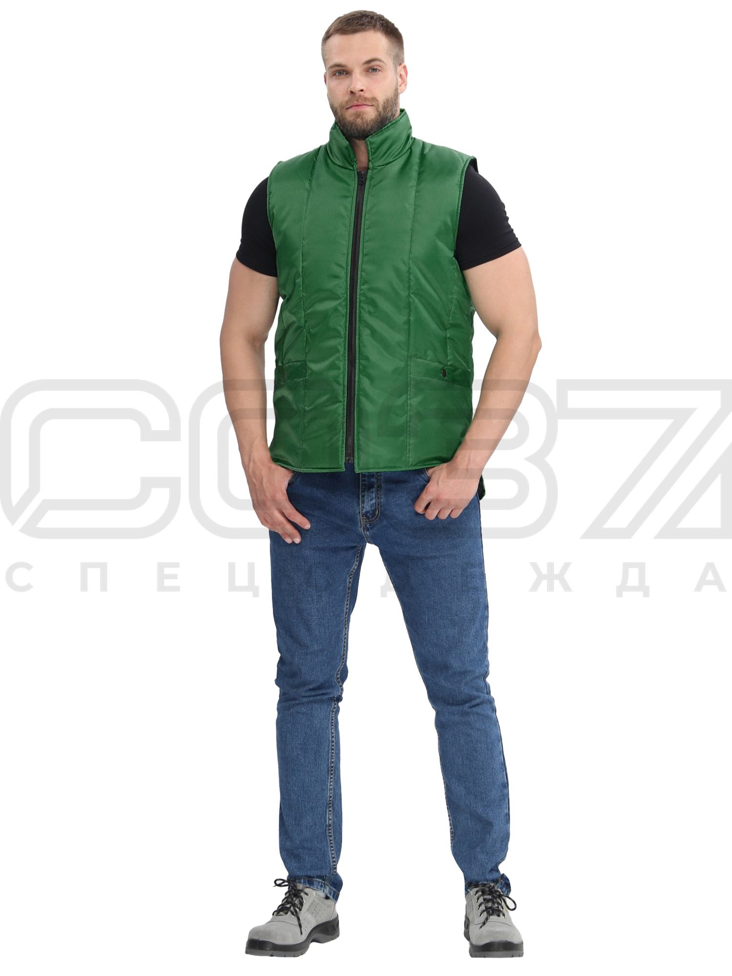 Жилет рабочий утеплённый "Базис" цв.т.зелёный тк.оксфорд в Тюмени